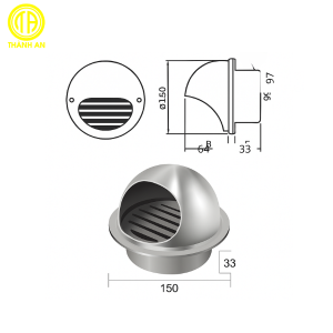 - Miệng chụp (dome cap): Dạng hình bán cầu được đục khe hở theo thiết kế chuẩn giúp khí thoát ra dễ dàng mà vẫn chống được nước mưa rơi trực tiếp vào trong ống.
